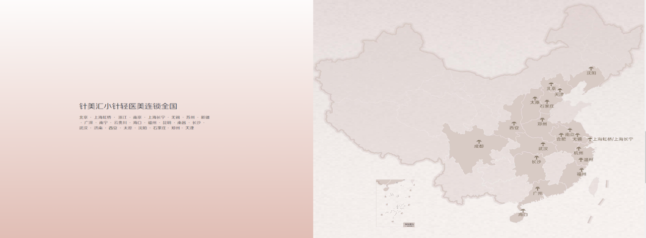 针美汇为中国“小针轻医美”品类开创品牌,其核心技术“小针自体修复技术”具有无填充、无风险、无副作用的安全特质,经过23年5次技术迭代,填补了医美延缓衰老界多项技术空白,共计申请16项国家专利。针美汇作为上海欧邦医疗旗下“医疗级高保养”的小针轻医美连锁品牌,面向各综合医美机构创新性的实现了“闭环式”的解决方案,即完整提供专科产品、医师团队、接诊培训客户服务、品牌营销全链条交付,不但能够填补当下医美机构的品类空白,更能有效提高运营的坪效和人效,真正实现终端客户、运营机构、上游厂家的多赢共好。